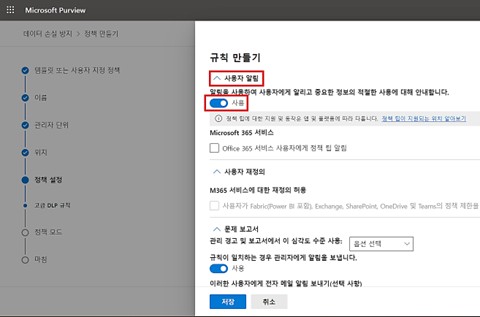 (10) [ 사용자 알림 ] 항목을 아래와 같이 설정합니다.