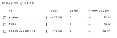 (A) 관리자 계정으로 Microsoft Purview – 레이블 메뉴에 접속합니다.