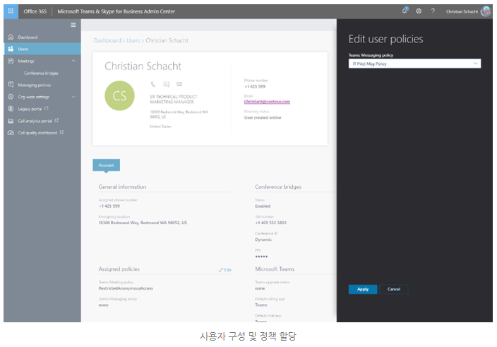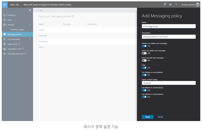 MS팀즈 메시지 정책 설정: 사용자들에게 적용되는 메시지 정책을 설정 가능합니다.