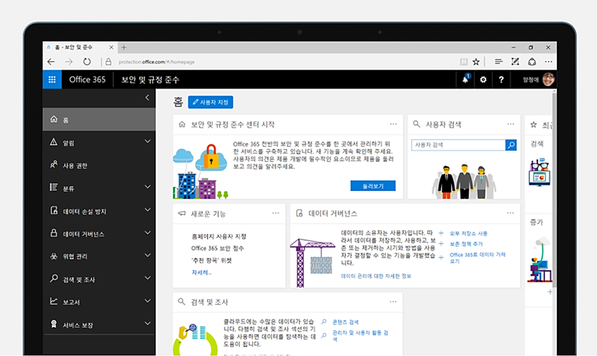 어디에서나 안전하게 파일을 저장하고 공유할 수 있습니다. Office 365 를 사용하면 비즈니스용 OneDrive에 사용할 수 있는 1TB의 클라우드 공간이 제공됩니다.