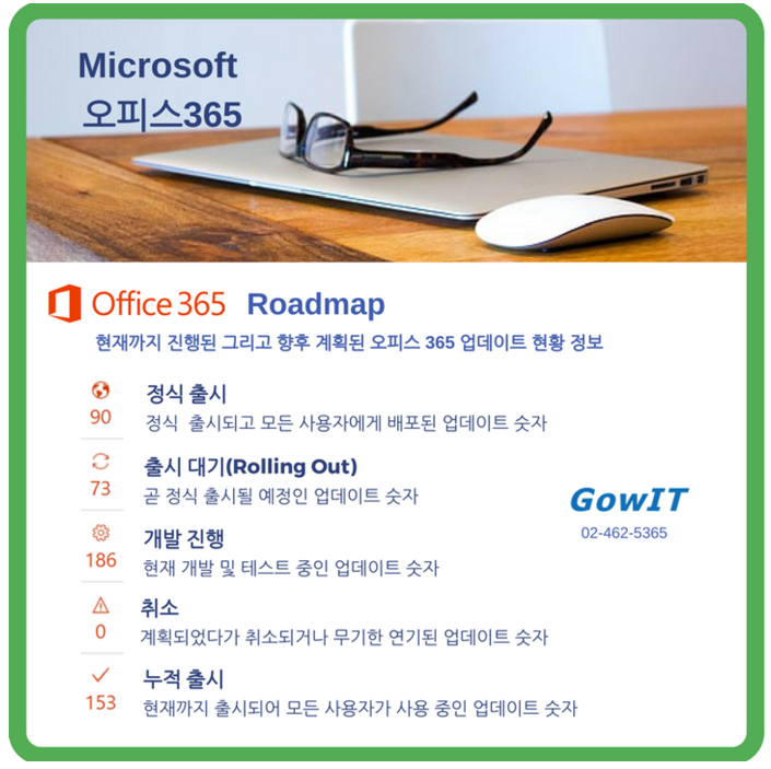 오피스 365 사용자들이 이미 잘 활용하고 있는 현재까지의 누적 업데이트 숫자입니다.