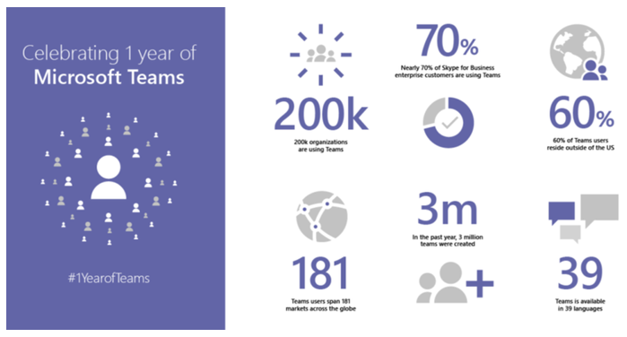 마이크로소프트가 “채팅 기반의 워크플레이스!”라는 주제로 작년 3월에 출시한 MS팀즈는 시장에서는 슬랙같은 “협업 솔루션”으로 정의되고 있습니다. 시장 후발 주자이고 1년이 조금 시간 시점이지만 MS팀즈가 쌓아 온 결과물이 저의 예상보다 휠씬 좋군요. 오늘은 지난 1년간 MS팀즈가 이룩한 성과들을 살펴볼까 합니다.