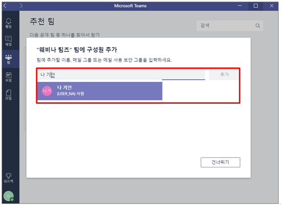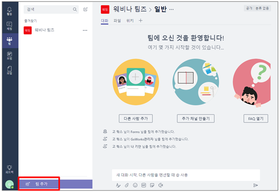 오늘은 MS 팀즈에서 팀을 생성하고 구성원 추가하는 법에 대해서 소개해드리려고 합니다.