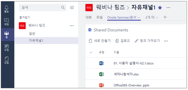 ⑪ 탭에 선택한 문서가 나타나고 해당 SharePoint 사이트에 업로드 된 문서가 나타납니다.