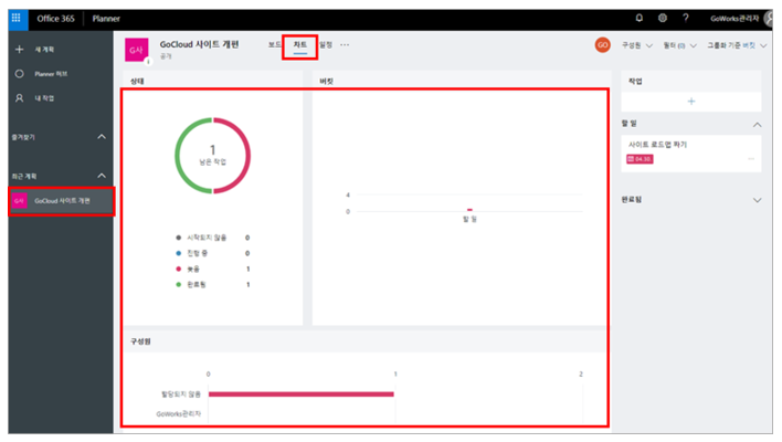 플래너 화면에서 [차트]를 클릭하면 현재 작업으로 등록된 내용을 차트로 확인할 수 있습니다.