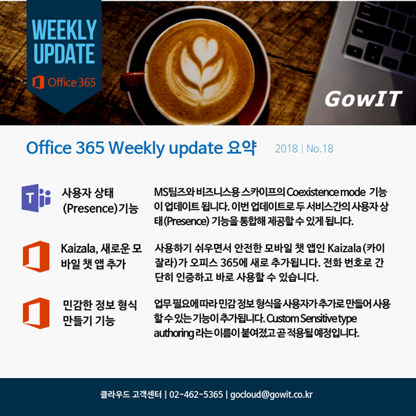 가을이 깊어가는 11월에 전해 드리는 18번째 오피스 365 위클리 업데이트 소식입니다. 이번에도 오피스 365 사용 기업들이 반겨 맞으실 소식들이 여러 개 들어있습니다.