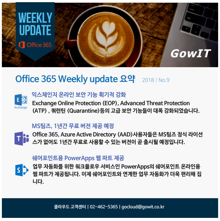 봄 기운을 넘어 여름의 뜨거운 기운도 느껴지는 5월도 벌써 중순이 되었네요. 5월에 진행된 오피스 365의 주요 기능 업데이트를 정리했습니다. 클라우드 서비스인 오피스 365를 저희도 사용하고 있지만, 일신우일신 (日日新 又日新)이란 단어가 정말 잘 어울리는 제품인 것 같습니다.