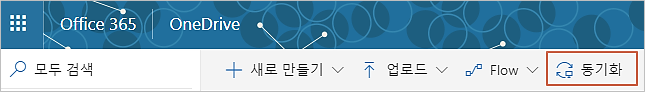 ① 먼저 비즈니스용 OneDrive를 동기화 하기 위해 Office 365 또는 SharePoint에 로그인하여 페이지 상단에 있는 OneDrive를 선택 후 [동기화]를 클릭합니다.