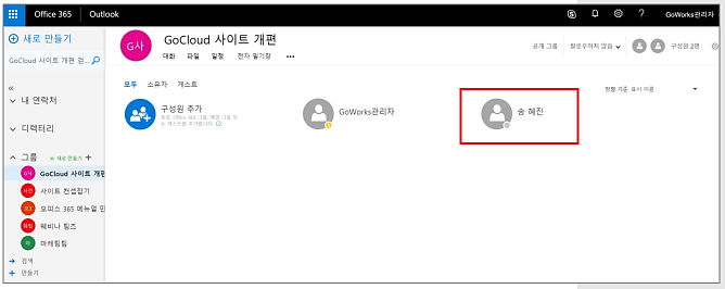 ③ [Gocloud 사이트 개편] 이라는 계획의 그룹창이 열리면 해당 그룹의 구성원들을 확인할 수 있습니다.