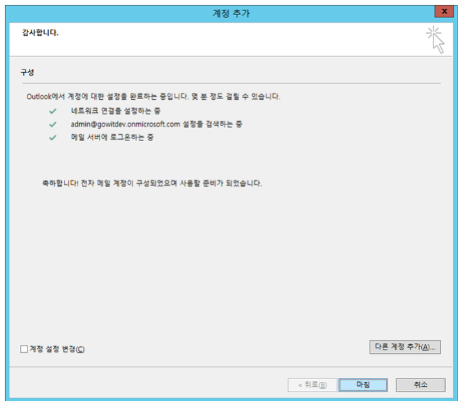 이제 아웃룩 메일 클라이언트 연동 작업이 완료되었습니다. Outlook을 이용해 보다 효율적으로 메일, 일정, 연락처를 관리하실 수 있습니다. 여러분의 퇴근 시간이 빨라질 수 있지 않을까요? ㅎㅎ