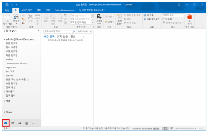 6. 처음 나타나는 화면은 메일 화면이며 좌측 하단 아이콘을 통하여 화면을 변경할 수 있습니다.