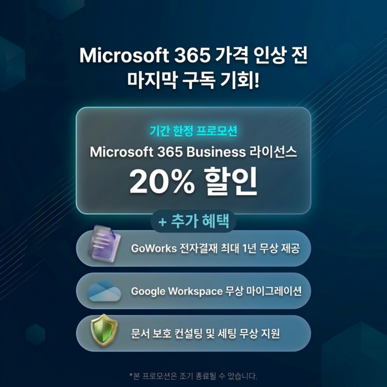 | 🎁 Microsoft 365 Business 라이선스 20% 할인