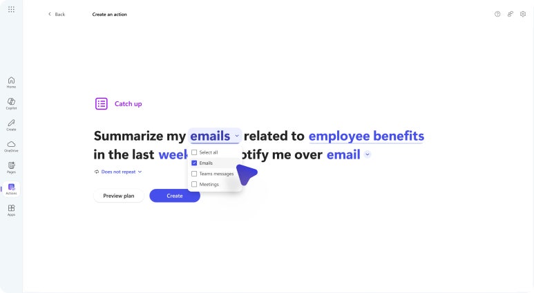 “Help me create” 기능은 마이크로소프트 365 코파일럿 앱에서 폐기됩니다. 2024년 2월에 출시된 “Help me create”는 사용자가 명시된 의도에서 LLM을 사용하여 문서 생성으로 전환하도록 돕는 데 중점을 두었습니다. Microsoft 365 코파일럿 앱이 코파일럿의 대상이 되면서 AI 기반 문서 생성 기능을 코파일럿 탭으로 가져올 예정입니다. 사용자는 아이디어를 브레인스토밍하고 스토리보드 또는 스크립트를 기반으로 새로운 콘텐츠를 초안하여 코파일럿 챗의 일정 또는 요약을 작성할 수 있습니다.