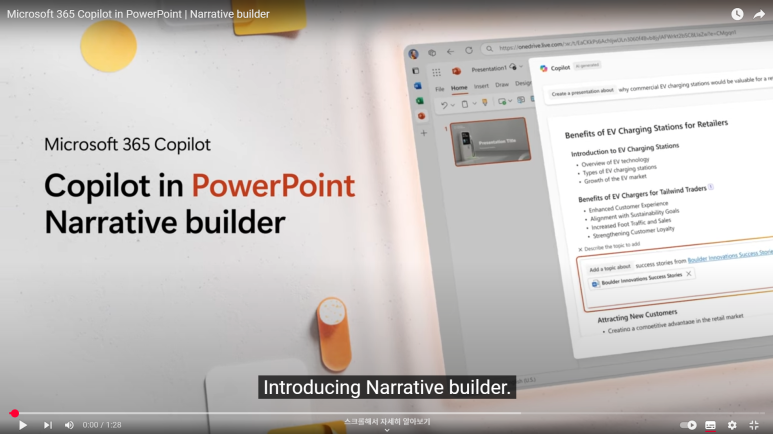 [동영상]Microsoft 365 Copilot in PowerPoint의 Narrative Builder(출처: 마이크로소프트 365)