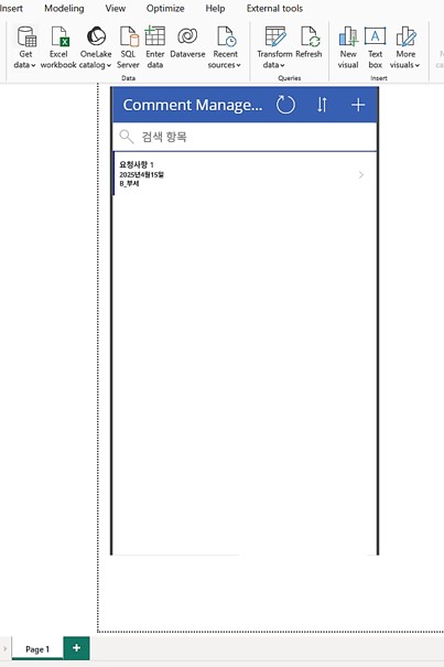 ① 수정 완료된 앱을 게시하여 Power BI에 생성된 Power Apps를 불러옵니다.