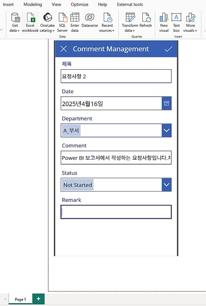 사용자는 보고서 안에서 데이터를 직접 입력, 수정, 삭제할 수 있으며 Power Apps를 따로 실행하거나 SharePoint 목록에 접속할 필요 없이 하나의 화면에서 모든 작업을 처리할 수 있습니다.