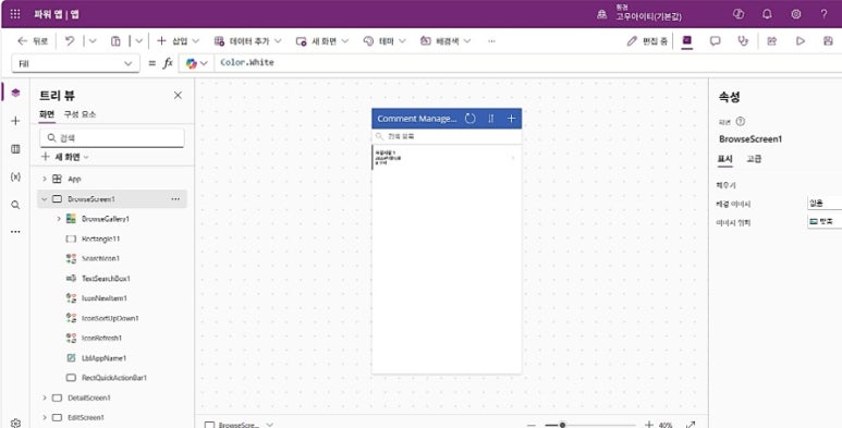 자동으로 데이터 원본이 연결된 Power Apps가 생성됩니다.