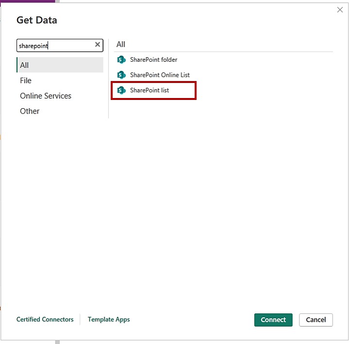 ② SharePoint 목록 데이터를 데이터 원본으로 가져옵니다.