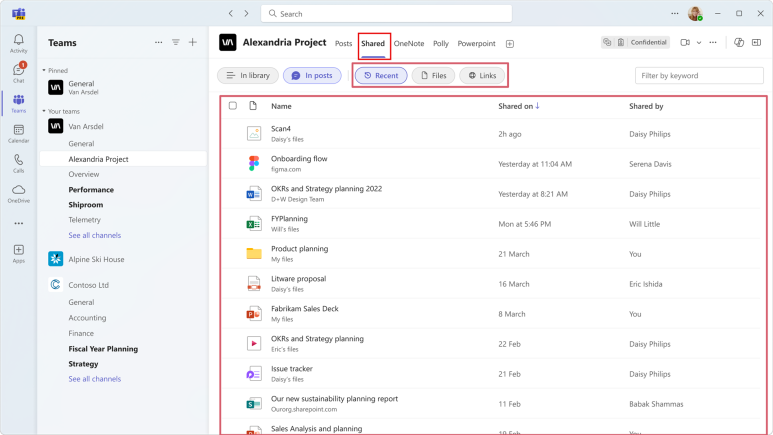 Microsoft Teams : 채널 “공유” 탭(이전 “파일” 탭)에 새로운 기능 제공