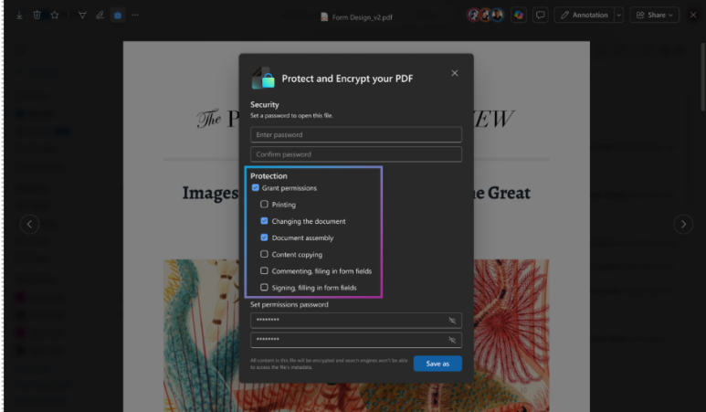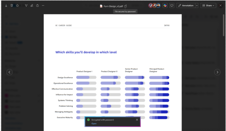 OneDrive 웹을 통해 무단 액세스를 제한하는 보호 기능이 업데이트될 예정입니다. 업데이트 전에는 사용자가 PDF 파일을 보호하기 위해 비밀번호를 설정할 수 없었습니다. 그러나 이번 업데이트를 통해 이제 SharePoint 및 OneDrive 사용자는 PDF를 암호화하여 무단 액세스를 제한할 수 있게 됩니다. 업데이트되는 이 기능으로 사용자는 권한이 없는 사용자가 PDF 파일을 열지 못하도록 사용자 비밀번호를 설정하거나 콘텐츠 인쇄, 복사 또는 수정과 같은 특정 작업을 수행하기 위한 소유자 비밀번호를 설정할 수 있습니다.