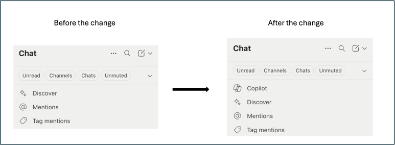 이 업데이트 기능은 이달 말인 6월 30일부터 Copilot(코파일럿) 바로가기로 표시되어 Teams 채팅 목록 맨 위(“검색” 바로 위)에서 확인할 수 있습니다.